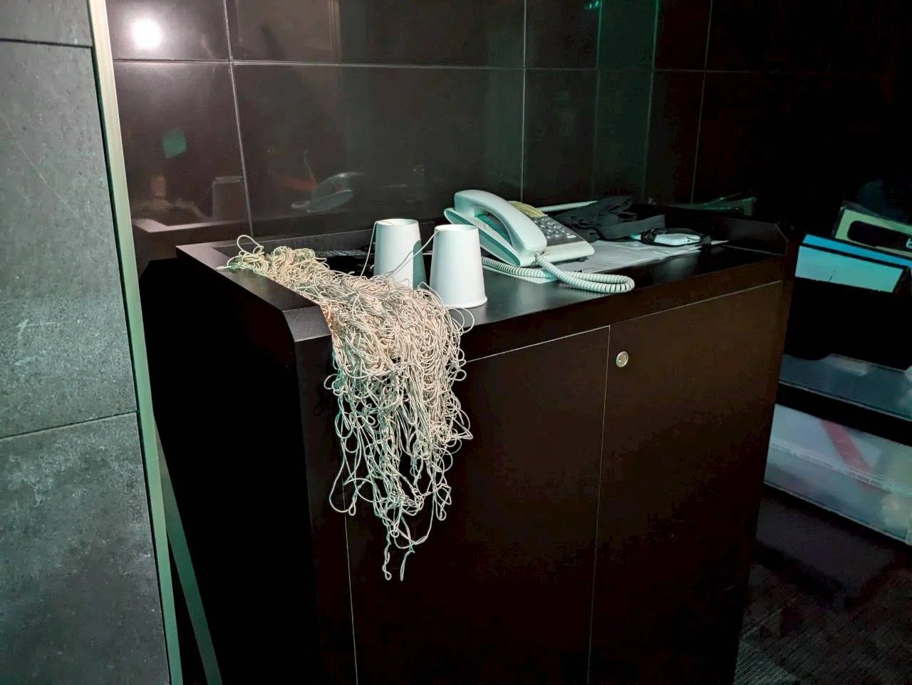 연락용 전화가 실 전화로, 엄청 실이 길거나…